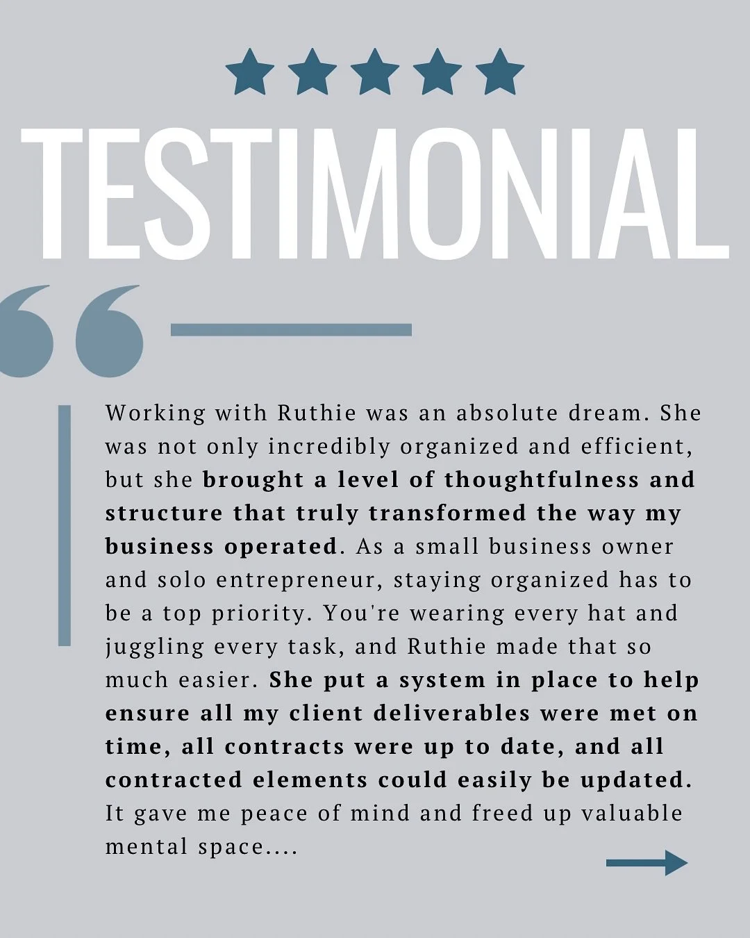 A behind-the-scenes business collaborator who brings clarity to your operations, builds the tools you’ve been avoiding, and helps you move forward with purpose.