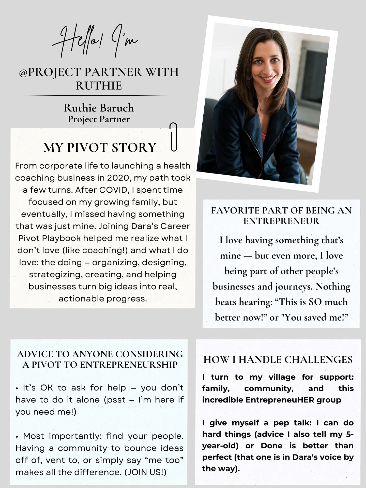 Hi, I’m Ruthie Baruch - founder of Project Partner with Ruthie.
